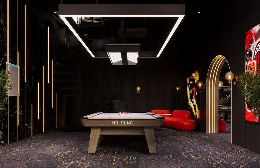 Thiết kế phòng bida VIP riêng tư tầng 1 với ánh sáng chuẩn, decor cao cấp, không gian khép kín mang đến trải nghiệm chơi bida riêng biệt và đẳng cấp.