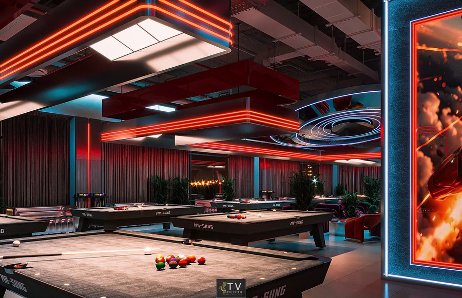 Thiết kế thi công Club Bida 10 bàn 350m² với góc LED Ceiling Play Zone mang đến một không gian chơi bida hiện đại, nổi bật và giàu tính trải nghiệm. Việc kết hợp trần LED khối, ánh sáng tiêu chuẩn và bố cục khoa học giúp club vừa đảm bảo công năng, vừa tạo dấu ấn thương hiệu rõ ràng. Đây là lựa chọn phù hợp cho các chủ đầu tư muốn phát triển mô hình club bida cao cấp tại TPHCM.