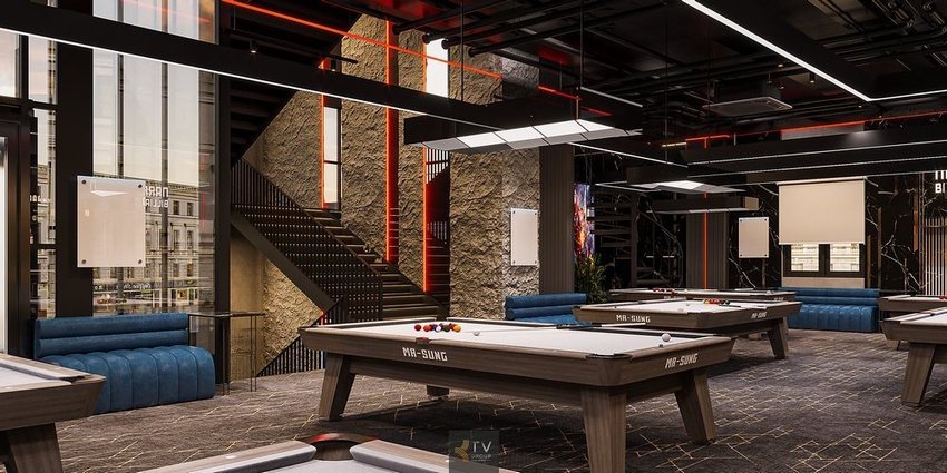 Phong cách Industrial Lounge phù hợp khách trẻ, dân chơi bida.