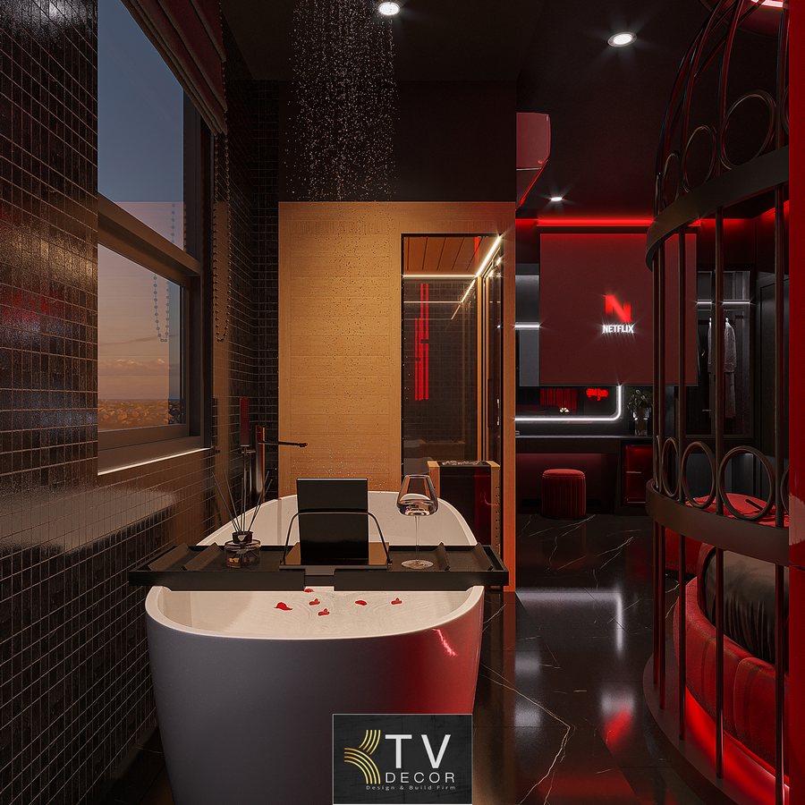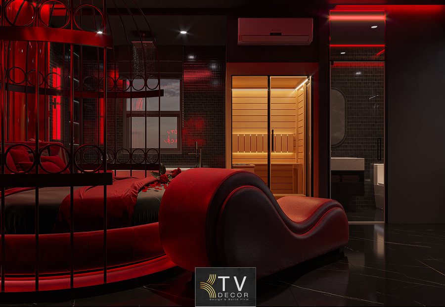 Concept: Red Embrace – Không gian ánh đỏ tạo cảm giác ấm áp, sang trọng và đầy tinh tế