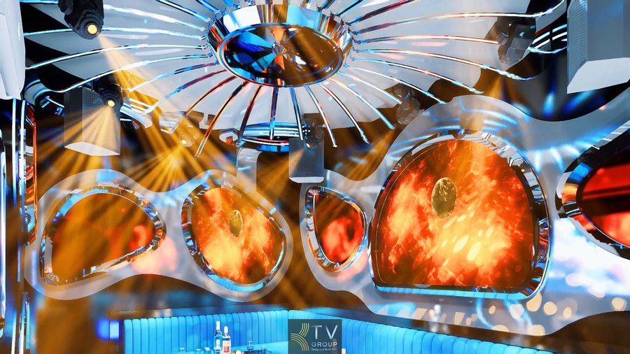 Phong cách LED năng lượng là xu hướng thiết kế sử dụng hình ảnh chuyển động mạnh như ánh sáng plasma, dòng năng lượng, hiệu ứng cháy hoặc bùng nổ kết hợp LED động. Không gian mang cảm giác mạnh mẽ, sống động và thay đổi theo nhịp nhạc, tạo trải nghiệm giải trí cao cấp.